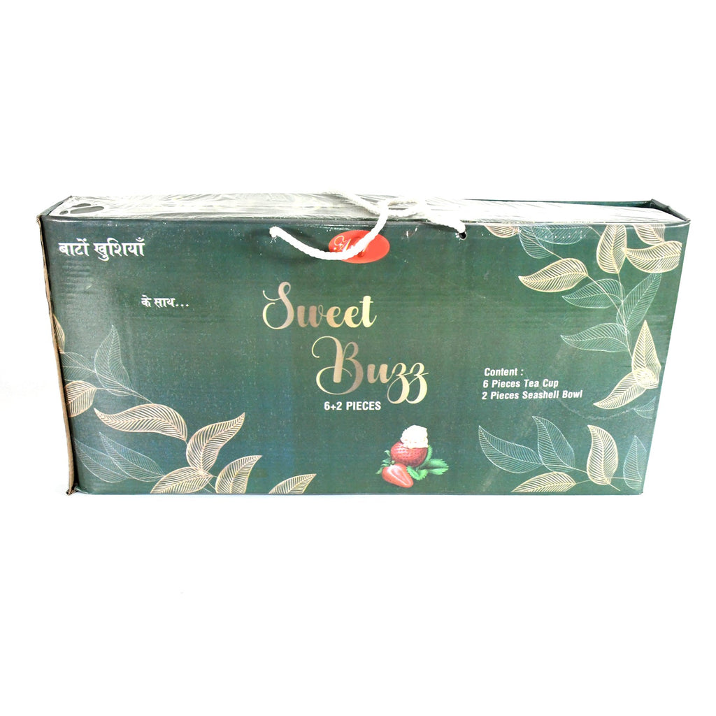 8237 Sweet Buzz Ceramic Tea / cups / Mug Set With Seashell Shape Serving Bowl Milk Cup, Coffee Cup, Tea Cup, Breakfast Cup, Drinking Mug or Outdoor for Household, Gift for Birthday, Wedding Party (8 Pcs set)Description :-6 pcs Ceramic cup & 2 pc Plastic bowl 8-piece set of seashell bowls and cups. Made from durable ceramic cup & plastic bowl, these stunning pieces are the perfect addition to your collection. Serve up your favorite snacks and drinks in style and impress your guests with their unique design.
